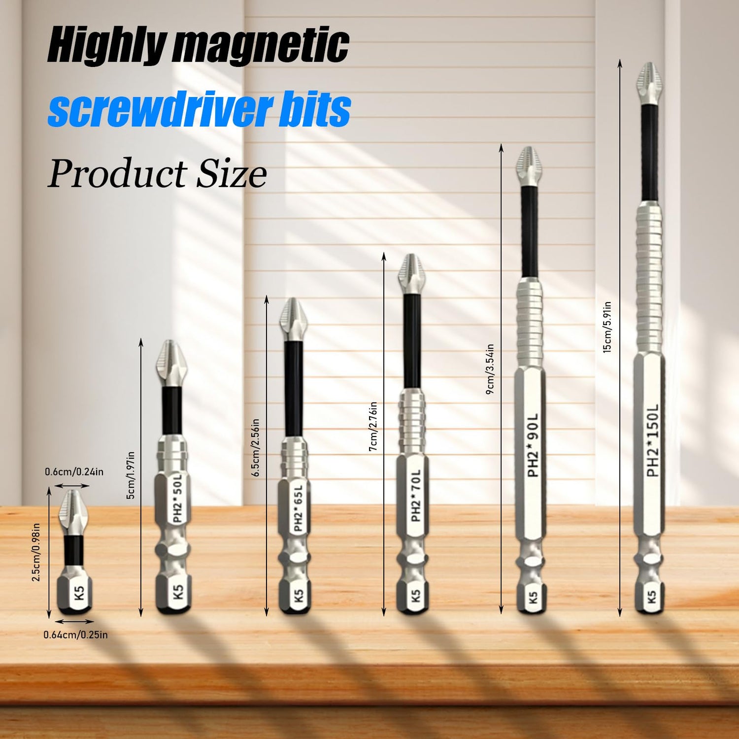 Each bit is equipped with a strong magnet at the end, allowing you to easily pick up and fix screws without slipping or stripping. This ensures a secure hold and precise placement every time.
